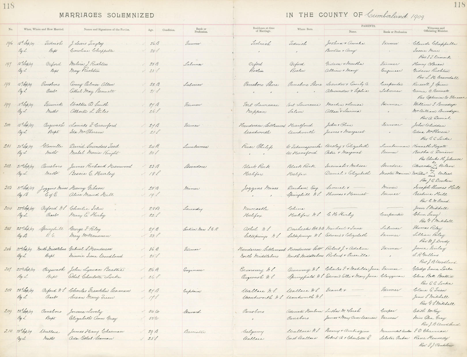 Parents Father: TEED, John Wesley Mother: LANGILLE, Elizabeth Birth Born on February 03, 1883 in West Tatamagouche, Colchester Co., NS Death Died on March 11, 1935 in Belmont, Colchester Co., NS Buried in Belmont Cemetery in Belmont, Colchester Co., NS Marriages KNIGHT, Mabel Maria Married on September 20, 1909 in Glenville, Cumberland Co., NS Children TEED, Daniel TEED, Charles Edward: November 10, 1910 - April 05, 1989 TEED, Lawrence Holmes: June 04, 1913 - January 24, 1962 TEED, Ellen Elizabeth: September 22, 1915 - 2002 TEED, Laura Jane: March 31, 1918 - July 27, 2000 TEED, Oscar Layton: August 16, 1920 - August 02, 1993 TEED, Hazel Esther: February 05, 1923 - September 02, 1995 TEED, Edgar Douglas: 1925 - October 31, 1999 TEED, Frances Lavenia: June 10, 1928 - December 13, 2021 Notes Occupation: Lumberman Death: Chronic Bronchitis Sources Nova Scotia Deaths: Book 157 Pg. 1048 Images David S. Teed David S. Teed Death David S. Teed Marriage