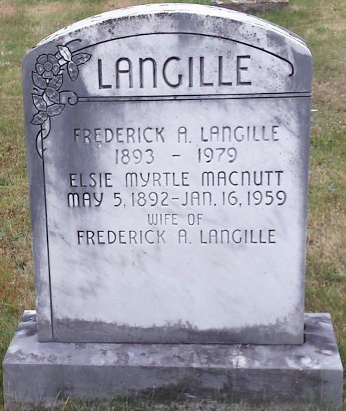 Parents Father: MACNUTT, Daniel P. Mother: LIVINGSTONE, Christina Marie Birth Born on May 05, 1892 in Cape George, Antigonish Co., NS Death Died on January 16, 1959 in Tatamagouche, Colchester Co., NS Buried in Bell Gift Cemetery in New Annan, Colchester Co., NS Marriages LANGILLE, Frederick Allison Married on January 02, 1920 in Saint John, Saint John Co., NB Children LANGILLE, Alice Livingstone: September 29, 1920 - 2003 LANGILLE, Sylvia Jean: October 03, 1923 - February 17, 2013 LANGILLE, Boy: 1924 - 1924 LANGILLE, Arthur Nelson: December 02, 1924 - July 05, 1965 LANGILLE, Frederick Allison: December 31, 1926 - May 09, 2015 LANGILLE, Elizabeth Grace: January 26, 1929 LANGILLE, Girl: May 14, 1932 - May 14, 1932 LANGILLE, Carolyn Elsie: August 05, 1933 Notes Occupation: School Teacher Death: Cerebral Hemorhage Obituary: West New Anna, Feb. 5 - The death of Mrs. Frederic Allison LANGILLE, Millbrook, occurred at Tatamagouche Hospital late Friday evening, January 13 following a very short illness though her general health had been poor for some time. She was the former Elsie Myrtle McNUTT, daughter of the late Mr. and Mrs. Daniel McNUTT of Saint John. Born at Cape George, Pictou County, she lived at Truro, New Glasgow and Saint John. She taught in Nova Scotia Schools for slightly more than 19 years, and her efforts as such were praiseworthy. Besides her husband she is survived by six children, Alice (Mrs. Richard DWINEL) of Halifax; Elizabeth (Mrs. Clarence VAUSE), Millbrook; Sylvia (Mrs. Ronald ROSS), Waldegrave; Carrie (Mrs. Halton DALZELL), Grand Manan, N.B.; Arthur of Calgary and Fred of Oshawa; three sisters, Caroline McNUTT of Saint John; Mrs. Frank WARDEN of Toronto; Mrs. George MELVIN, Saint John; one brother, George McNUTT of Bassam, Alberta. She was predeceased by two brothers, Ernest and Colin. The funeral service was held from New Annan United Church of which the deceased was a member. Rev. Gordon DECKER officiated. Interment was at Bell Gift Cemetery. Sources Nova Scotia Deaths: Year 1959 Pg. 1233 Colchester Cemeteries: Bell Gift Cemetery # 65 Images Frederick A. & Elsie (MacNutt) Langille Elsie (MacNutt) Langille Death Frederick A. Langille Marriage