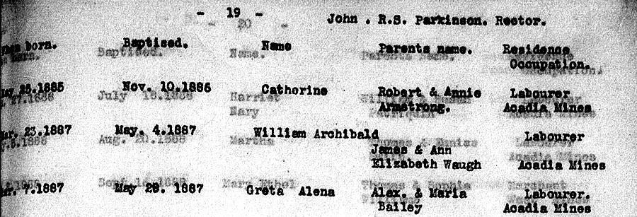 Parents Father: BAILEY, Alexander Mother: PHILIPS, Maria Elizabeth Birth Born on March 07, 1887 in Folly Mountain, Colchester Co., NS Death Died on June 19, 1973 in Val-d'Or, Abitibi-Temiscaningue Region, QU Buried in Cimetière Golden Valley de Val-D'Or in Val-d'Or, Abitibi-Temiscaningue Region, QU Marriages PATRIQUIN, Ira Bordon Married on September 08, 1904 in Londonderry, Colchester Co., NS Children PATRIQUIN, Gertrude Alena: March 03, 1905 - 1983 PATRIQUIN, Otis B.: December 29, 1906 - August 26, 1985 PATRIQUIN, Annie Viola: February 21, 1908 - September 24, 1966 PATRIQUIN, Elroy Arnold: August 13, 1912 PATRIQUIN, Vivian Jenny: August 05, 1914 - July 16, 1993 PATRIQUIN, Alex Trueman: August 03, 1916 - July 01, 2005 PATRIQUIN, Dora Gladys: October 07, 1920 - February 22, 2003 PATRIQUIN, Evelyn Eileen: January 31, 1923 - January 07, 2002 PATRIQUIN, Lorne: 1927 - 2000 Sources Mormons: https://www.familysearch.org/tree/person/sources/LLQ2-KXH Images Greta Bailey Birth Ira Patriquin Marriage Dora,Evelyn,Vivian,Gertrude,Greta (Bailey) Patriquin
