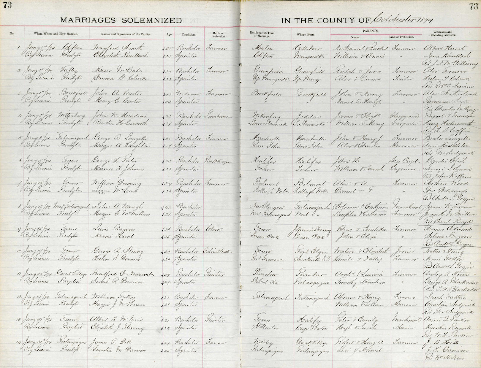 Parents Father: TATTRIE, Abraham Mother: COLE, Mary Birth Born on June 14, 1870 in Tatamagouche, Colchester Co., NS Death Died on January 16, 1961 in Tatamagouche, Colchester Co., NS Buried in French River Cemetery in French River, Colchester Co., NS Marriages MACPHERSON, Margaret Jane Married on January 26, 1894 in Tatamagouche, Colchester Co., NS Children TATTRIE, Margaret Clark: March 30, 1902 - January 06, 2001 Notes Occupation: Farmer Death: Cerebral Arteriosclerosis Sources Nova Scotia Deaths: Year 1961 Pg. 1182 Images Abraham & Mary (Cole) & James W. & Margaret (MacPherson) Tattrie Abraham & Mary (Cole) Tattrie & James W. & Margaret (MacPherson) Tattrie James Tattrie Death James Tattrie Marriage