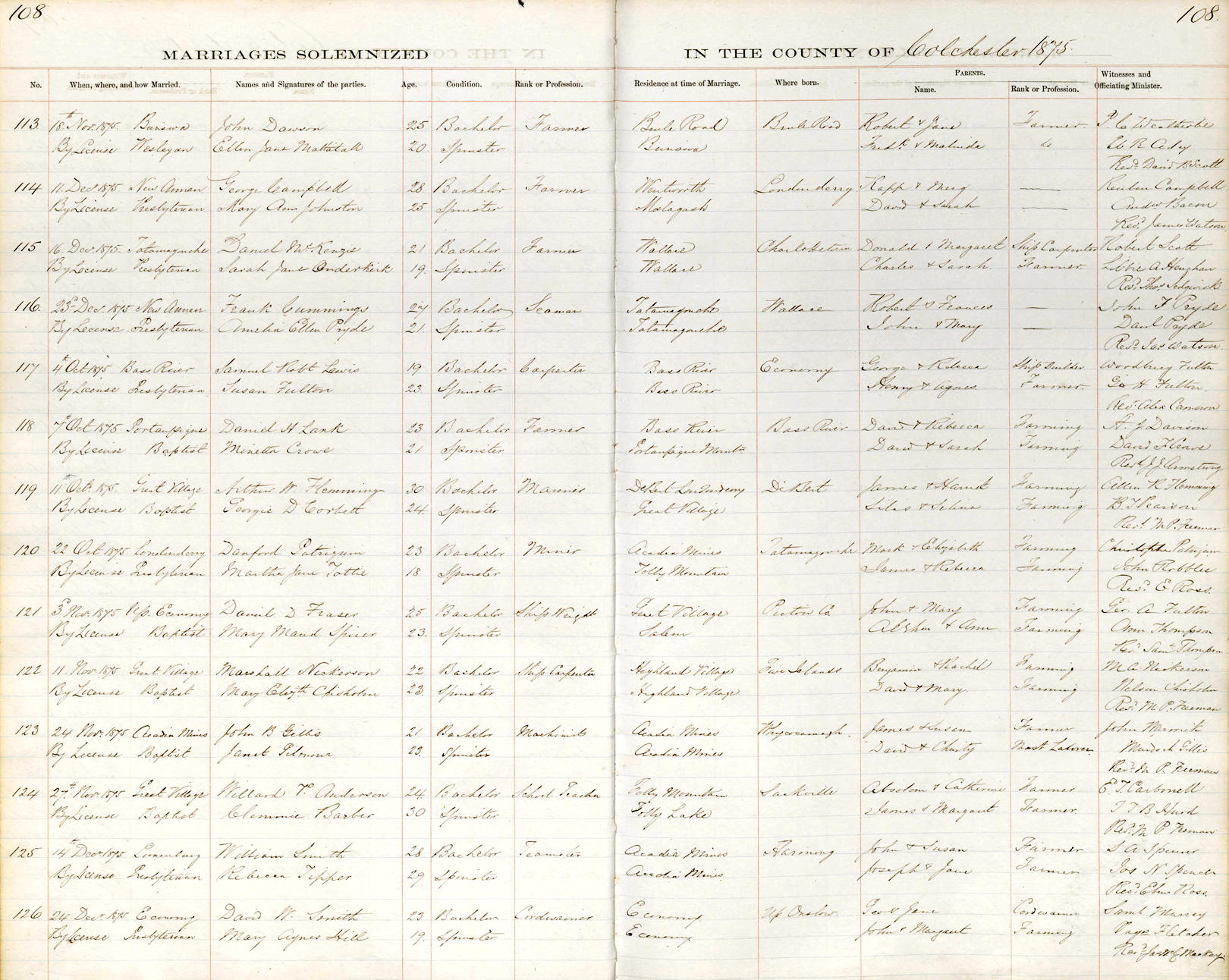 Parents Father: PATRIQUIN, Mark Mother: MATTATALL, Mary Elizabeth Birth Born on July 25, 1853 in Tatamagouche, Colchester Co., NS Death Died on December 19, 1924 in Folly Lake, Colchester Co., NS Buried in United Church Cemetery in Wentworth, Cumberland Co., NS Marriages TOTTEN, Martha Jane Married on October 22, 1875 in Londonderry, Colchester Co., NS Children PATRIQUIN, Ira Bordon: November 08, 1878 - August 16, 1924 Notes Occupation: Miner/ Farmer Death: Mitral Regurgitation Sources Nova Scotia Deaths: Book 112 Pg. 550 Images Danford Patriquin Danford Patriquin Death Danford Patriquin Marriage