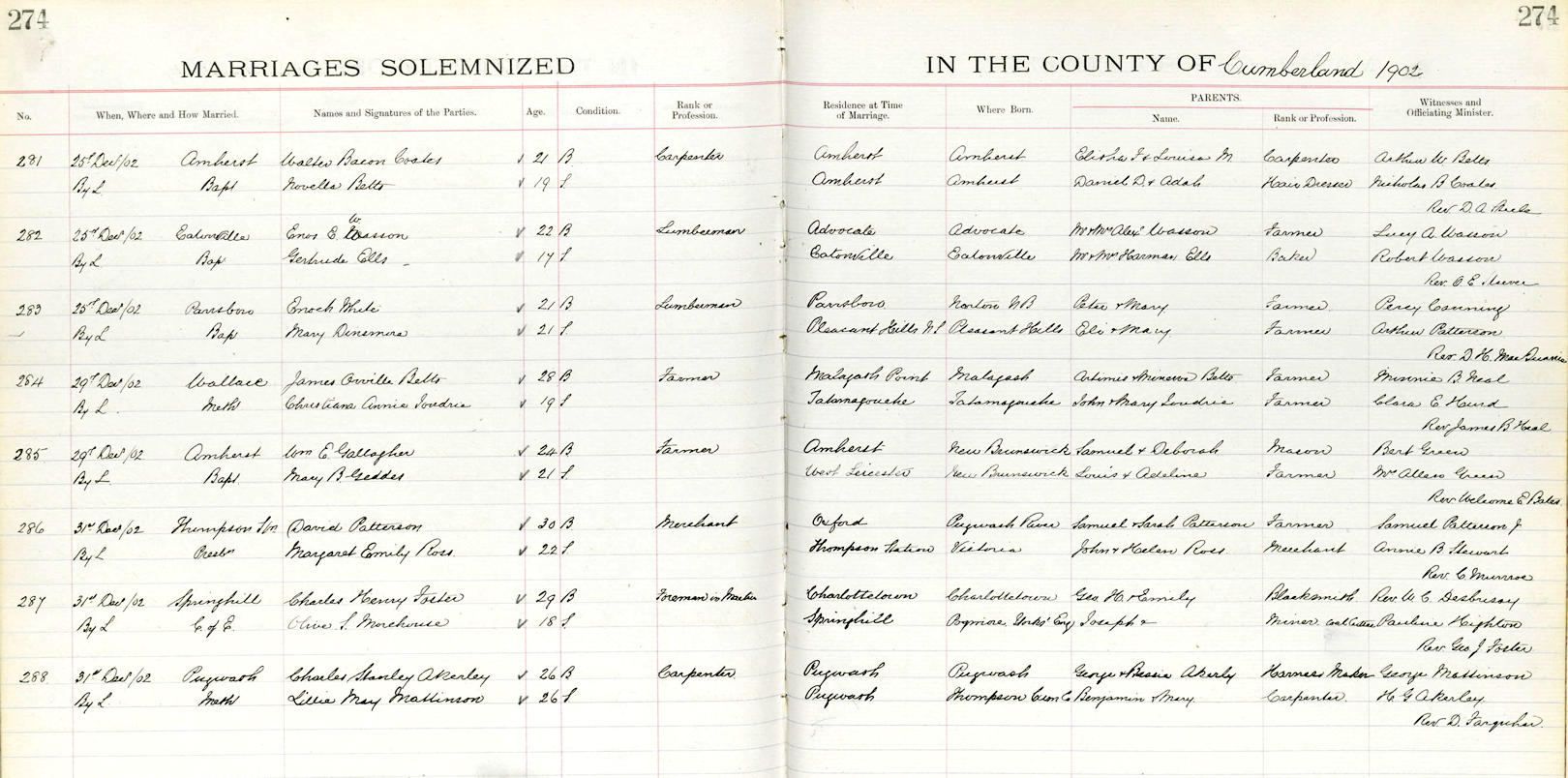 Parents Father: JOUDRIE, John Henry Mother: LANGILLE, Mary McBurnie Birth Born on March 02, 1884 in Tatamagouche, Colchester Co., NS Death Died on May 03, 1949 in Waltham, Middlesex Co., MA Buried in Malagash United Church Cemetery in Malagash, Cumberland Co., NS Marriages , Married on December 29, 1902 in Wallace, Cumberland Co., NS Children BETTS, Emsley A.: September 11, 1902 - May 03, 1949 BETTS, Prudence Ethel: October 01, 1905 - February 16, 1981 Notes Occupation: Laundress Sources Cumberland Cemetery Records: Malagash United Church Cemetery Malagash,NS Images James & Christina (Joudrie) Betts James Betts Marriage2