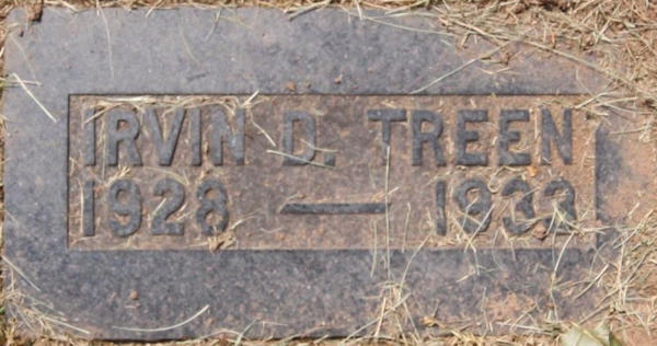 Parents Father: TREEN, Samuel Russell Mother: BENSON, Alpha Elizabeth Birth Born on July 27, 1928 in Rouleau, Regina Census Division, SK Death Died on May 23, 1933 in Amherst, Cumberland Co., NS Buried in Amherst Cemetery in Amherst, Cumberland Co., NS Notes Death: Pneumonia Sources Mormons: https://familysearch.org/ark:/61903/2:2:SYGM-5W3 Images Irvin Treen