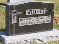 Parents Father: WILLETT, John Reid Mother: CORKERY, Hannah Elizabeth (Foster) Birth Born on July 19, 1885 in Granville Centre, Annapolis Co., NS Death Died on 1973 in Granville Centre, Annapolis Co., NS Buried in Wadeville Cemetery in Granville Centre, Annapolis Co., NS Marriages MACLEAN, Bessie Cuthbert Married on January 07, 1915 in Margaretsville, Annapolis Co., NS Children WILLETT, Marguerite Elizabeth: August 04, 1917 Notes Occupation: Farmer Sources Annapolis Cemetery Records: Wadeville Cemetery Granville Centre,NS Images Leroy & Bessie (MacLean) Willett LeRoy Willett Marriage