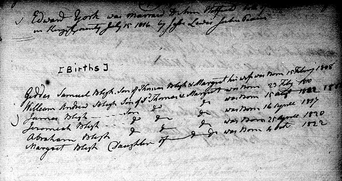 Parents Father: BLIGH, Thomas Mother: FOOTE, Phoebe Margaret Birth Born on April 16, 1817 in Cornwallis, Kings Co., NS Death Died on January 26, 1884 in Cornwallis, Kings Co., NS Buried in Billtown Baptist Cemetery in Billtown, Kings Co., NS Marriages McMULLIN, Margaret Married on 1839 Children BLIGH, Everett: January 10, 1841 - December 13, 1919 BLIGH, Margaret Ann: February 13, 1852 - June 19, 1938 Notes Occupation: Farmer Sources Kings Cemetery Records: Billtown Baptist Cemetery Row 2 #46 Images Jeremiah Bligh Birth Jeremiah Bligh Jeremiah Bligh
