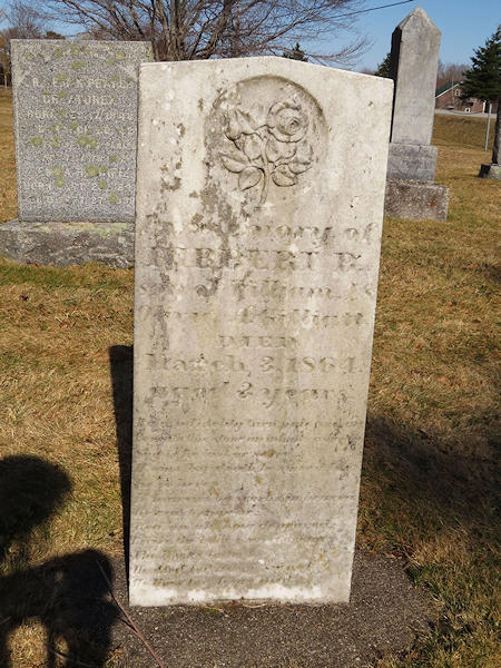 Parents Father: GILLIATT, William Allan Mother: PHINNEY, Olivia Ann Birth Born on 1861 in Granville, Annapolis Co., NS Death Died on March 03, 1864 in Granville, Annapolis Co., NS Buried in All Saints Anglican Graveyard in Granville Centre, Annapolis Co., NS Sources Annapolis Cemetery Records: Granville Centre All Saints Anglican Graveyard #84A Images Hibbert Gilliatt