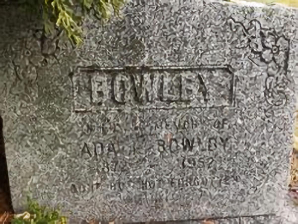 Parents Father: TUFTS, Major Judson Mother: LANGILLE, Minnie Elizabeth Birth Born on August 14, 1876 in New Germany, Lunenburg Co., NS Death Died on November 22, 1952 in Halifax, Halifax Regional Municipality, NS Buried in Aylesford Union Cemetery in Aylesford, Kings Co., NS Marriages BOWLBY, Frederick Chipman Married on February 15, 1911 in Aylesford, Kings Co., NS Children BOWLBY, Leslie Kenneth: September 10, 1918 - January 27, 1989 Notes Death: Peritonitis/ Ruptured Gall Bladder Sources Nova Scotia Deaths: Year 1952 Pg. 5663 Images Ada Tufts Birth Ada (Tufts) Bowlby Ada (Tufts) Bowlby Death Frederick Bowlby Marriage