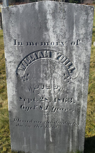 Birth Born on April 25, 1781 in Old Barns, Colchester Co., NS Death Died on September 28, 1863 in Great Village, Colchester Co., NS Buried in Folly Village Cemetery in Glenholme, Colchester Co., NS Marriages GOURLEY, Eleanor Married on February 11, 1818 in Truro, Colchester Co., NS CAMPBELL, Jane Married on March 03, 1803 in Londonderry, Colchester Co., NS Children YUILL, Eleanor: February 09, 1808 - October 30, 1857 YUILL, Joseph Mahon: September 30, 1830 - January 20, 1915 Sources Colchester Cemeteries: Folly Village Cemetery Glenholme,NS Images William Yuill Birth William Yuill