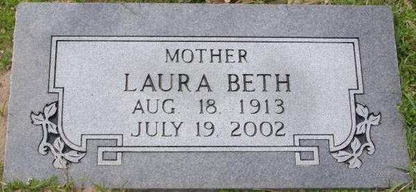 Parents Father: MACKEY, Lewis Terrell Mother: ANDREWS, Jessie Lorena Birth Born on August 18, 1913 in Gilmer, Upshur Co., TX Death Died on July 19, 2002 in Gilmer, Upshur Co., TX Buried in Gilmer City Cemetery in Gilmer, Upshur Co., TX Marriages LEDBETTER, Troy Oswell Children LEDBETTER, Robert Wayne: March 23, 1940 LEDBETTER, Billy Don: May 15, 1942 LEDBETTER, Linda Ann: August 28, 1946 Sources US Social Security Index: SSN 459-72-3483 Images Laura (Mackey) Ledbetter. Laura (Mackey) Ledbetter