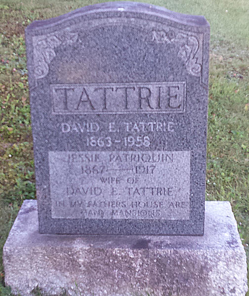 Parents Father: TATTRIE, Edward Mother: McNUTT, Hannah Birth Born on March 18, 1863 in French River, Colchester Co., NS Death Died on July 23, 1958 in Tatamagouche, Colchester Co., NS Buried in French River Cemetery in French River, Colchester Co., NS Marriages PATRIQUIN, Jessie Married on May 10, 1889 in New Annan, Colchester Co., NS Children TATTRIE, Gladys Annie: November 20, 1897 - October 31, 1942 Notes Occupation: Farmer Death: Arteriosclerosis/ Heart Disease Sources Nova Scotia Deaths: Year 1958 #4256 Images David & Jessie (Patriquin) Tattrie David Tattrie Death David Tattrie Marriage