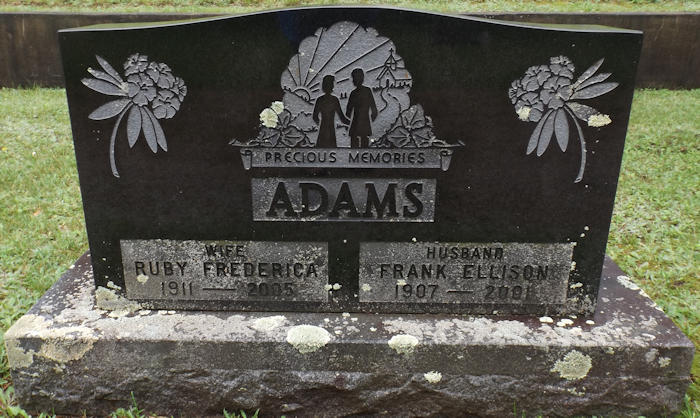 Parents Father: ZWICKER, Frederick Clayton Mother: OSWALD, Jennie Frederica Dorothy Birth Born on February 15, 1911 in New Albany, Annapolis Co., NS Death Died on May 18, 2005 in Annapolis Royal, Annapolis Co., NS Buried in Pine Grove Cemetery in Albany Cross, Annapolis Co., NS Marriages ADAMS, Frank Ellison Married on October 15, 1929 in Middleton, Annapolis Co., NS Children ADAMS, Shirley ADAMS, Gini ADAMS, Marilyn: 1933 ADAMS, Linda Louise: 1943 - 2005 Notes Obituary: ADAMS, Ruby Frederica - We are saddened to announce the passing of our beloved mother, Ruby Frederica Adams, 94, of Annapolis Royal, formerly of Deep Brook and New Albany, who passed away peacefully on May 18, 2005, in Annapolis Royal Nursing Home surrounded by her loving family. Born in New Albany on February 15, 1911, she was the daughter of the late F. Clayton and J. Frederica (Oswald) Zwicker. An avid gardener, she and her husband, volunteered at Pine Grove Cemetery, New Albany. The cemetery was awarded a provincial Rural Beautification prize as a result of their leadership. She grew beautiful rhododendrons and leaves behind a legacy of beauty in her former flower gardens. She was noted for her handcrafted Log Cabin quilts and will be remembered as a loving and generous mother, grandmother and great-grandmother. Surviving are daughters, Shirley Burrell, Marilyn (Stan) Brown and Gini Proulx, all of Deep Brook; nine grandchildren and 11 great-grandchildren; several nieces and nephews in British Columbia and the United States. She was predeceased by her devoted husband of 71 years, Frank; daughter, Linda McGinley; sisters, Dorothy Rathbun and Lillian Aceto (Rhode Island); brothers, G. Martin, Allen and Charles, and grandsons, infant Stephen and David Brown. Visiting 2-4 p.m. Saturday and funeral service 4 p.m. Sunday, both in Warren T. Roop Funeral Home, Middleton, Rev. Bill McLeod officiating. Interment in Pine Grove Cemetery, New Albany. Donations to Pine Grove Cemetery, New Albany or a charity of choice. The family wish to thank Annapolis Royal Nursing Home for their compassionate care during her stay there and to VON while living at home. Sources Funeral Home: Warren T. Roop Funeral Home Middleton,NS Obituary May 2005 Images Frank & Ruby (Zwicker) Adams