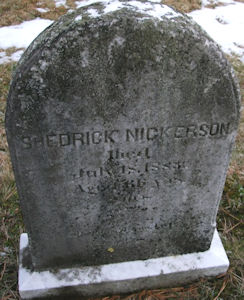Parents Father: NICKERSON, Daniel Mother: PHILLIPS, Sarah Birth Born on May 28, 1817 in Cotuit, Barnstable Co., MA Death Died on July 19, 1882 in Cotuit, Barnstable Co., MA Buried in Mosswood Cemetery in Cotuit, Barnstable Co., MA Marriages CROSBY, Lucinda Jane Married on January 01, 1841 in Barnstable, Barnstable Co., MA Children NICKERSON, Sarah Ann: February 26, 1842 - October 07, 1913 Notes Occupation: Mariner Death: Softening of the Brain Sources Massachusetts Deaths: Barnstable #47 Images Shadrick Nickerson Shadrick Nickerson Death