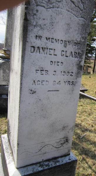 Birth Born on March 19, 1816 in Granville, Annapolis Co., NS Death Died on February 03, 1902 in Annapolis Co., NS Buried in Chesley Cemetery in Upper Granville, Annapolis Co., NS Marriages WHEELOCK, Mary Eliza Married on 1845 in Annapolis Co., NS HALL, Louisa Jane Children CLARK, Harriet E.: 1850 - August 03, 1879 Notes Occupation: Farmer Sources Annapolis Cemetery Records: Upper Granville Chesley Cemetery #3 Annapolis Cemetery Records: Chesley Cemetery Upper Granville,NS Images Daniel Clark