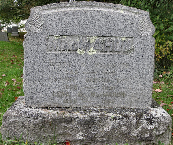 Birth Born on September 27, 1849 in Aylesford, Kings Co., NS Death Died on April 08, 1932 in Aylesford, Kings Co., NS Buried in Aylesford Old United Cemetery in Aylesford, Kings Co., NS Marriages ROBINSON, May Creusa Married on January 01, 1883 in Nicholsville, Kings Co., NS Children McMAHON, Reuben Robinson: May 07, 1896 - January 02, 1981 Notes Occupation: Farmer Death: Influenza Sources Nova Scotia Deaths: Book 126 Pg. 1564 Images Busby & May (Robinson) McMahon
