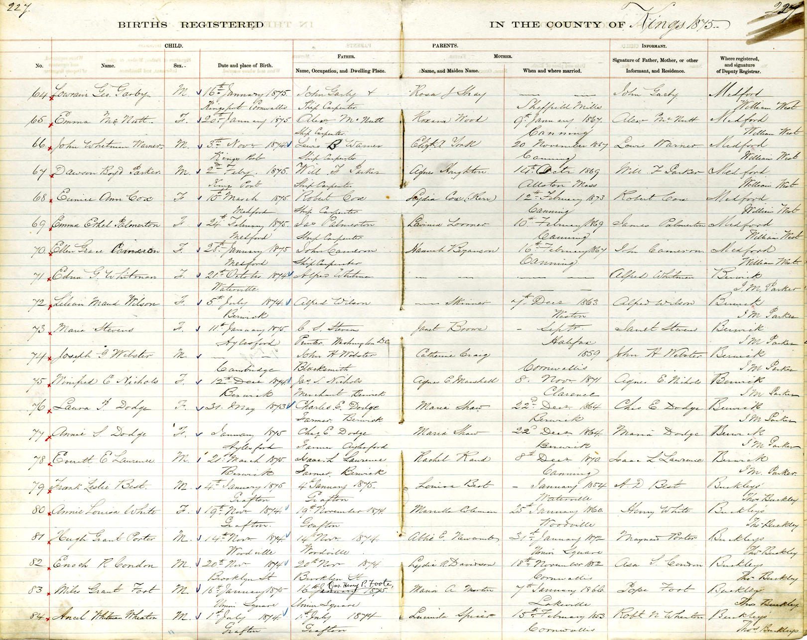 Parents Father: DODGE, Charles E. Mother: SHAW, Maria Birth Born on 1875 in Aylesford, Kings Co., NS Death Died on 1898 in Berwick, Kings Co., NS Buried in Berwick Cemetery in Berwick, Kings Co., NS Sources Kings Cemetery Records: Berwick Cemetery Berwick,NS Images Annie S. Dodge Birth Laura & Annie Dodge