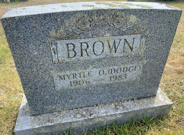 Parents Father: DODGE, Henry Aubrey Mother: RAINFORTH, Hannah Elizabeth Birth Born on January 18, 1906 in Windermere, Kings Co., NS Death Died on 1983 in Berwick, Kings Co., NS Buried in Berwick Cemetery in Berwick, Kings Co., NS Marriages BROWN, Leland Wesley Sources Kings Cemetery Records: Berwick Cemetery Berwick,NS Images Myrtle Dodge Birth Myrtle (Dodge) Brown