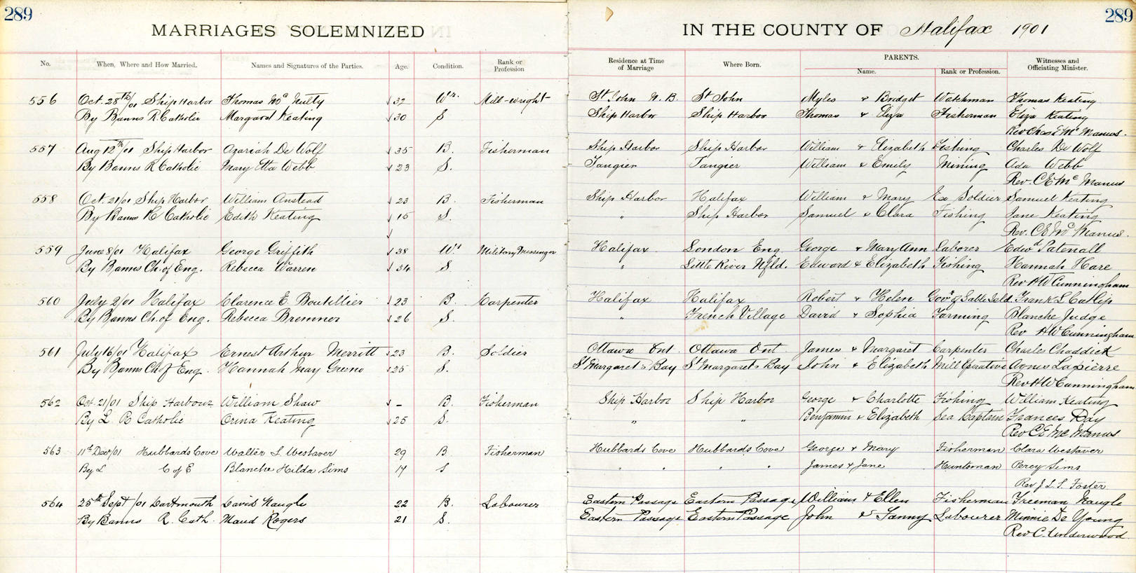 Birth Born on August 25, 1876 in Ship Harbour, Halifax Co., NS Marriages SHAW, William Henry Married on October 21, 1901 in Ship Harbour, Halifax Co., NS Children SHAW, Gerald Karl: November 22, 1903 - October 20, 1940 Images William H. Shaw Marriage