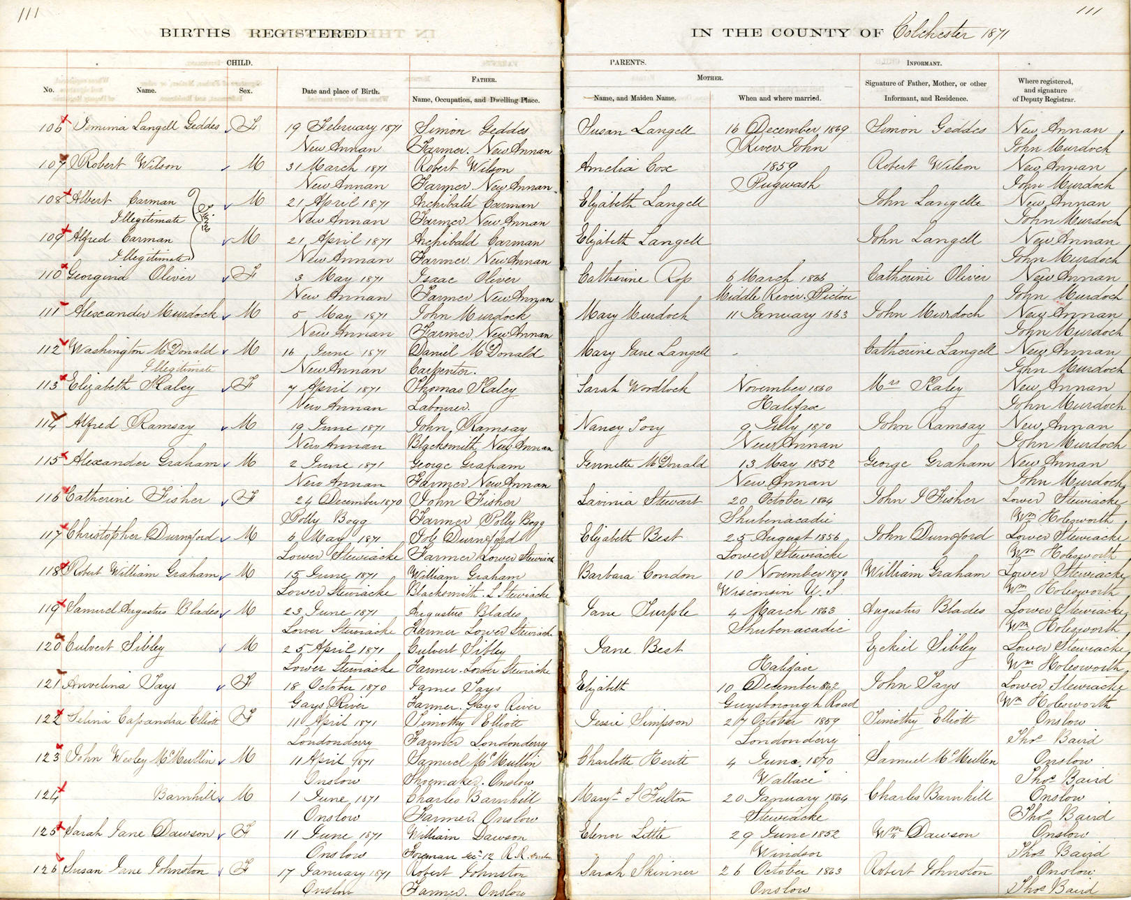 Birth Born on March 31, 1871 in New Annan, Colchester Co., NS Death Died on September 16, 1960 in Tatamagouche, Colchester Co., NS Buried in Forest Hill Cemtery in Denmark, Colchester Co., NS Marriages MACIVER, Annabelle Married on March 28, 1900 in Newton Centre, Middlesex Co., MA Children WILSON, Robert MacIvor: February 16, 1901 - January 11, 1987 Notes Occupation: Driver/ Farmer Death: Cancer Sources Nova Scotia Deaths: Year 1960 Pg. 5248 Colchester Cemeteries: Forest Hill Cemetery Denmark,NS #75 Images Robert C. Wilson Birth Robert C. & Annabelle (McIver) Wilson Robert C. Wilson Death Robert C. Wilson Marriage