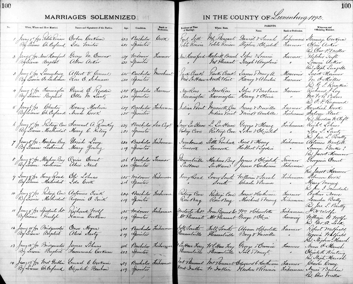 Birth Born on December 16, 1870 in Pleasantville, Lunenburg Co., NS Marriages LOHNES, James Married on January 12, 1892 in Bridgewater, Lunenburg Co., NS Children LOHNES, Maurice Wilbert: August 15, 1896 - September 20, 1970 Images James Lohnes Marriage