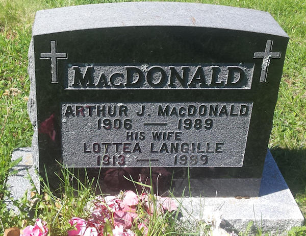 Birth Born on 1906 in Chignecto, Cumberland Co., NS Death Died on 1989 in Amherst, Cumberland Co., NS Buried in Saint Charles-Nativity Roman Catholic Cemetery in Amherst, Cumberland Co., NS Marriages LANGILLE, Lottea Married on March 04, 1939 in Amherst, Cumberland Co., NS Sources Cumberland Cemetery Records: Saint Charles-Nativity Roman Catholic Cemetery Amherst,NS Images Arthur & Lottea (Langille) McDonald Lottie Langille Marriage