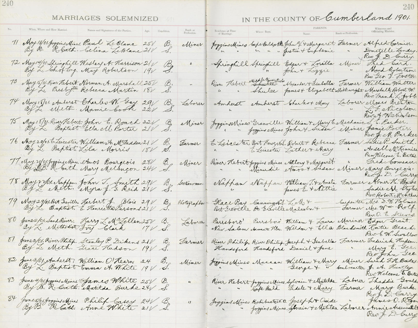 Birth Born on 1875 in Maccan, Cumberland Co., NS Marriages WHITE, Emma A. Married on June 03, 1901 in Amherst, Cumberland Co., NS Children O'HEARN, William: 1902 Notes Occupation: Coal Miner Images William O'Hearn Marriage
