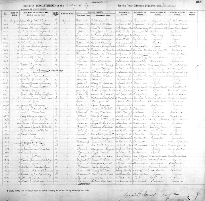 Parents Father: PARSONS, Wallace Freeman Mother: PORTER, Mary Edith Birth Born on August 13, 1914 in Lynn, Essex Co., MA Death Died on June 03, 2004 in Wakefield, Middlesex Co., MA Buried in Pine Grove Cemetery in Lynn, Essex Co., MA Marriages BISHOP, Marylyn Grant Married on 1940 Children PARSONS, William Edward Notes Military Service: WW2 US Army Occupation: Chauffeur Sources Massachusetts Cemeteries: Pine Grove Cemetery Lynn,MA Plot: Oriole Section-4 Lot-11,Gr.-1 Images William E. Parsons Birth William & Marylyn (Bishop) Parsons