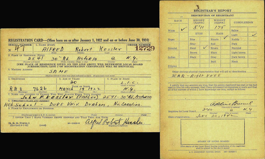 Birth Born on March 19, 1922 in Long Island City, Queens, New York, NY Death Died on January 21, 2011 in Paris, France Marriages RATCLIFFE, Charlotte M. Children KESSLER, Kathleen C.: 1948 Notes Occupation: Physician Images Alfred Kessler WW2 Draft