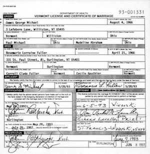 Parents Father: FULLER, Carroll Clyde Mother: GAUTHIER, Marie Jeanne Cecile Birth Born on April 21, 1966 in Barre, Washington Co., VT Marriages MICHAEL, James George Married on June 05, 1993 in Winooski, Chittenden Co., VT Images Rose-Marie Fuller Birth Rose-Marie Fuller Marriage