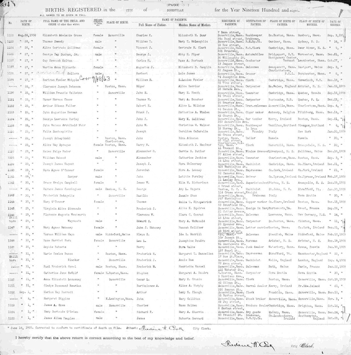 Birth Born on August 29, 1908 in Somerville, Middlesex Co., MA Death Died on November 06, 2004 in North Adams, Berkshire Co., MA Marriages DODGE, Leonard Fitch Children DODGE, Eleanor M.: July 14, 1933 DODGE, Beverly J.: September 01, 1938 DODGE, Judy: 1946 Sources Newspaper: North Adams,MA North Adams Transcript Nov 8,2004 Images Florence Wentworth Birth
