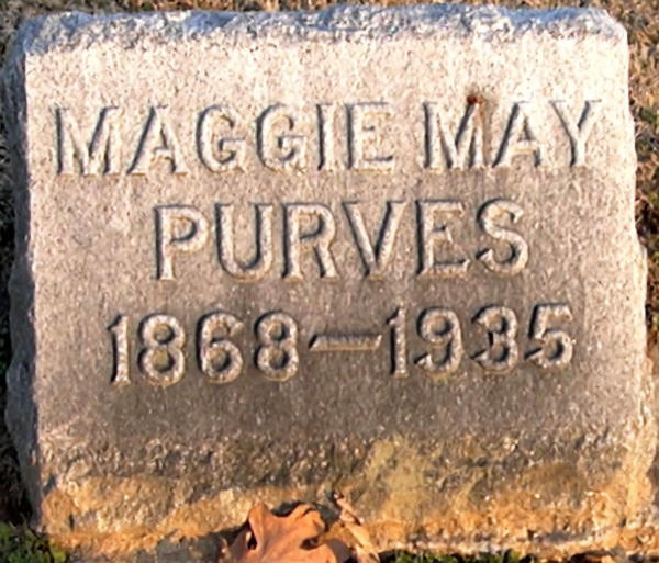 Parents Father: PURVES, Rulof Rulofson Mother: MERCER, Naomi B. Birth Born on January 07, 1868 in Mount Vernon, Linn Co., IA Death Died on June 12, 1935 in Washington, Franklin Co., MO Buried in Wildey Cemetery in Washington, Franklin Co., MO Notes Occupation: Teacher Obituary: Miss Maggie Purves was one of Washington, MO's most beloved school teachers. She was born in Mt. Vernon, IA. In 1883 her family moved to Washington, MO where she attended school. In 1887 she graduated from Harris Teacher's College in St. Louis. She taught for eight years in rural schools and then for forty years in the primary grades at Washington (MO) Grammar School. She was a devout member of the Methodist Church where she taught Sunday School and served on the Board of Religious Education. She never married. Sources Findagrave.com: http://www.findagrave.com/cgi-bin/fg.cgi?page=gr&GRid=32612943 Images Margaret May Purves Margaret Purves