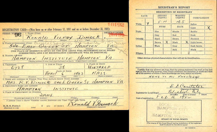 Parents Father: DIMOCK, Arthur Vilroy Mother: CRISP, Winnifred Birth Born on April 16, 1903 in Winthrop, Suffolk Co., MA Death Died on July 07, 1990 in Gilmanton, Belknap Co., NH Buried in Smith Meeting House Cemetery in Gilmanton, Belknap Co., NH Marriages RADDIN, Barbara Louise Children DIMOCK, Barbara Jayne: November 09, 1938 - November 24, 2020 Notes Occupation: Shoe Salesman/ Superintendant Commissary Images Arthur & Winifred (Crispe) Dimock, Ronald & Barbara Dimock Ronald & Barbara Dimock Ronald Dimock WW2 Draft
