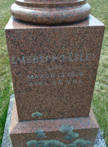 Parents Father: ILLSLEY, Nathan Mother: PORTER, Anna Birth Born on February 22, 1834 in Halls Harbour, Kings Co., NS Death Died on March 13, 1914 in Berwick, Kings Co., NS Buried in Billtown Baptist Cemetery in Billtown, Kings Co., NS Marriages FOOTE, Ruth Adelaide Children ILLSLEY, Embree W.: November 26, 1858 - June 11, 1938 ILLSLEY, Harmon: July 21, 1862 - February 19, 1937 Notes Occupation: Farmer Death: Congestion of Liver Sources Nova Scotia Deaths: Book 40 Pg. 17 #70 Images Emerson Illsley Emerson Illsley Death Emerson Illsley Emerson Illsley Death