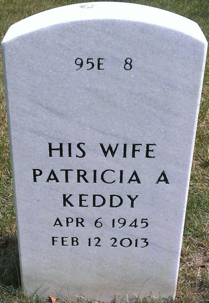 Birth Born on April 06, 1945 in Worcester, Worcester Co., MA Death Died on February 12, 2013 in Bristol, Hartford Co., CT Buried in State Veterans Cemetery in Middletown, Middlesex Co., CT Marriages KEDDY, Ronald Edward Married on 1963 in Bristol, Hartford Co., CT Children KEDDY, Timothy E.: March 11, 1966 KEDDY, Bonnie M.: March 22, 1971 Sources Cemetery: State Veterans Cemetery Middletown,CT Section 95 Row E Plot 8 Newspaper Obituary: The Bristol Press Obituary Feb. 15,2013 Images Patricia (Owen) Keddy Patricia (Owen) Keddy