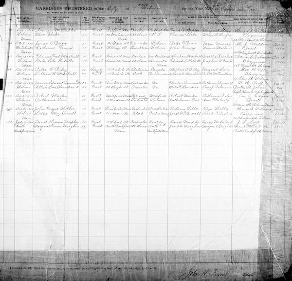 Birth Born on December 22, 1842 in Canada Death Died on July 21, 1918 in Hanson, Plymouth Co., MA Buried in Wood Brook Cemetery in Woburn, Middlesex Co., MA Marriages MARSHALL, Lillian A. Married on December 17, 1904 in Woburn, Middlesex Co., MA Notes Occupation: Electrician Death: Mitral Reguratation Military Service: US Civil War D Company 30th Infantry Massachusetts Volunteers Sources Massachusetts Deaths: Hanson,MA Pg. 18 #18 Massachusetts Cemeteries: Woodbrook Cemetery Woburn,MA Lot 702 Pilgrim Avenue Images Peter ORiley Death Peter ORiley Headstone Application Lillian Marshall Marriage