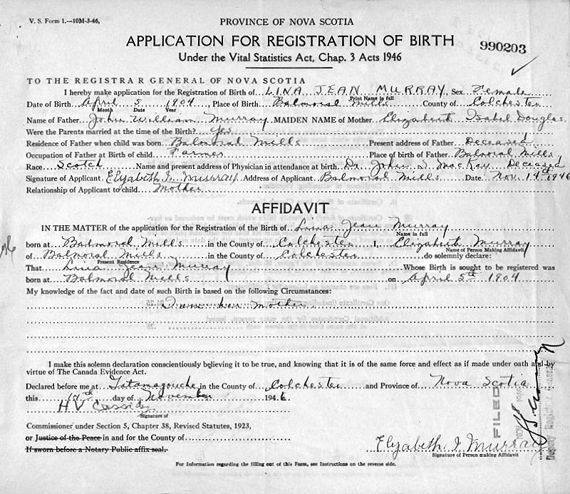 Birth Born on April 05, 1904 in Balmoral Mills, Colchester Co., NS Death Died on May 04, 1993 in Rosalind, Lloydminister Division, AB Buried in Greenview Cemetery in Rosalind, Lloydminister Division, AB Marriages LANGILLE, Victor Scott Children LANGILLE, Roy G.: February 21, 1928 LANGILLE, Lester George: November 27, 1933 - January 03, 1978 Sources Cemetery: Greenview Cemetery Rosalind,AB Images Lina Murray Birth