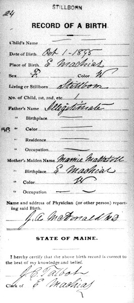 Parents Father: N/A Mother: MATTATALL, Mary B. Birth Born on October 01, 1895 in East Machias, Washington Co., ME Death Died on October 01, 1895 in East Machias, Washington Co., ME Notes Death: Stillborn Images Girl Mattatall Birth