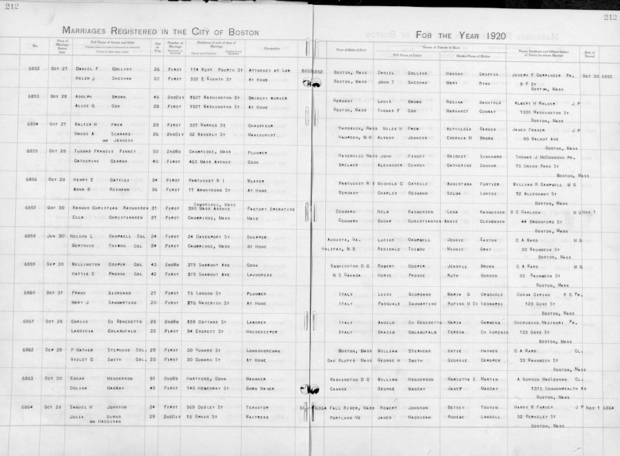 Birth Born on January 12, 1896 in Fall River, Bristol Co., MA Death Died on January 02, 1966 in Dorchester, Suffolk Co., MA Buried in Beth El Cemetery in West Roxbury, Suffolk Co., MA Marriages HADDICAN, Julia Ethel Married on October 28, 1920 in Boston, Suffolk Co., MA Notes Occupation: Teamster Military Service: WW1 US Army Sources US Veterans Admin Index: #241920 Images Samuel H. Johnson Birth Samuel Johnson Julia Haddican Marriage3 Samuel Johnson Mimlitary Service
