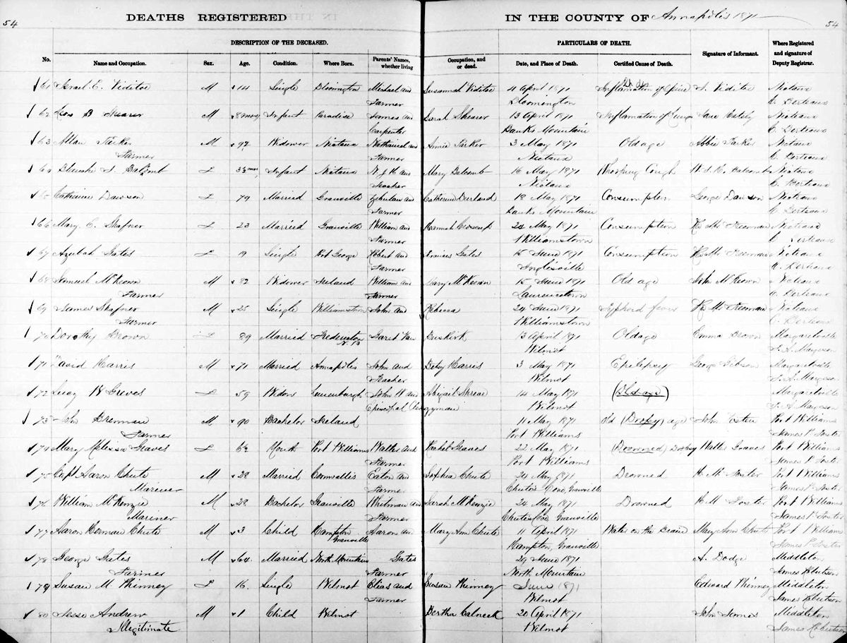 Parents Father: BEST, William Mother: CALNEK, Bertha Helen Birth Born on 1870 in Wilmot, Annapolis Co., NS Death Died on April 20, 1871 in Wilmot, Annapolis Co., NS Sources Nova Scotia Deaths: Book 1801 Pg. 54 #80 Images Jesse Calnek Death