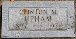 Parents Father: UPHAM, Henry Clinton Mother: MILLER, Ida Rose Birth Born on June 20, 1897 in Grafton, Walsh Co., ND Death Died on March 18, 1976 in Grafton, Walsh Co., ND Buried in Crescent Cemetery in Grafton, Walsh Co., ND Marriages FISCHER, Helena Augusta Children UPHAM, Margaret UPHAM, Charles UPHAM, Donna Jean: February 13, 1927 - June 18, 2008 UPHAM, Clinton Duane: April 05, 1928 - 1981 UPHAM, James Robert: September 05, 1929 - July 22, 2011 UPHAM, Charlotte E.: December 04, 1934 - July 31, 2010 Notes Occupation: Assistant Postmaster Images Clinton M. Upham Clinton M. Upham WW1 Draft