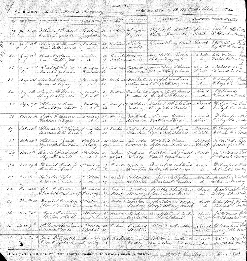 Birth Born on May 04, 1833 in Bellingham, Norfolk Co., MA Death Died on August 29, 1914 in Medway, Norfolk Co., MA Buried in Evergreen Cemetery in West, Medway, Norfolk Co., MA Marriages TREEN, Lewis Angevine Married on August 03, 1854 in Medway, Norfolk Co., MA Children TREEN, Francis Angevine: March 20, 1855 - October 11, 1834 TREEN, Philip Henry: July 13, 1858 - March 16, 1862 Notes Death: Old Age Sources Massachusetts Deaths: Medway,MA Pg. 419 #31 Images Frances (Grey) Treen Frances (Grey) Treen Death Lewis Treen Marriage