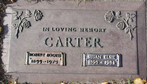 Parents Father: CARTER, William Oliver Mother: COLLINS, Hattie Helen Birth Born on July 07, 1899 in Victoria, Capital Region, BC Death Died on November 25, 1975 in Prince George, Fraser-Fort George Region, BC Buried in Prince George Municipal Cemetery in Prince George, Fraser-Fort George Region, BC Marriages McLAUGHLIN, Susan Elsie Married on August 14, 1925 in Vancouver, Metro Vancouver Region, BC Notes Occupation: Draftsman/ Notary Public Death: Cardiac Decompensation Sources BC Deaths: 75-09-017551 Images Robert B. Carter Birth Robert B. & Susan (McLaughlin) Carter Robert B. Carter Death Robert B. Carter Marriage
