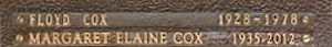 Birth Born on January 10, 1928 in Gulfport, Harrison Co., MS Death Died on March 28, 1978 in Bradenton, Manatee Co., FL Buried in Christ Episcopal Church Garden in Bradenton, Manatee Co., FL Marriages DILLON, Margaret Elaine Children COX, Scott COX, Susan Terry: March 23, 1962 Sources Florida Deaths: #24587 Images Floyd & Margaret (Dillon) Cox Floyd Cox