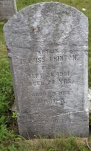 Parents Father: CHUTE, Joseph Handley Mother: PHINNEY, Martha Birth Born on May 21, 1830 in Hampton, Annapolis Co., NS Death Died on February 02, 1910 in St. Croix Cove, Annapolis Co., NS Buried in St. Croix Cove Cemetery in St. Croix Cove, Annapolis Co., NS Marriages BRINTON, Travis Married on 1849 in Annapolis Co., NS Children BRINTON, Avard B.: 1850 - November 14, 1873 BRINTON, Ada: 1853 - August 26, 1856 BRINTON, Charles: January 26, 1855 - July 18, 1892 BRINTON, Eber: June 16, 1862 - January 06, 1943 Notes Death: Pneumonia Sources Nova Scotia Deaths: Book 1 Pg. 62 #369 Annapolis Cemetery Records: St. Croix Cove Cemetery #33 Images Travis & Mary (Chute) Brinton