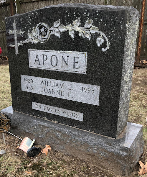 Parents Father: KEEFE, James Lawrence Mother: McCOLLUM, Nora Bernice Birth Born on April 24, 1932 in Watertown, Middlesex Co., MA Death Died on December 03, 2018 in Waltham, Middlesex Co., MA Buried in Grove Hill Cemetery in Waltham, Middlesex Co., MA Marriages LOFTUS, Richard Francis Married on July 24, 1949 in Seabrook, Rockingham Co., NH APONE, Avelino (William) Joseph Children APONE, William M. LOFTUS, Cynthia Jane: June 22, 1950 APONE, Deborah A.: 1959 APONE, Lynne M.: March 16, 1961 Notes Occupation: Executive Secretary Obituary: "Long after we are too big to carry in her arms, our mother carries us in her heart." . . . and that's how it was for Waltham's Joanne Apone. During her kids growing up years Joanne and her late husband Bill lived a life centered around their family . . . every night Bill would change out of his suit after getting home from his banking job, the family would have dinner together and the couple would sit for hours with a cup of coffee and talking over the day's events . . . almost unheard of nowadays. Thursday nights meant food shopping at the Star Market on River Street and at various times the pair bowled in leagues at Ryan's Bowling Alley in Watertown and at the Wal-Lex in Waltham. They could also be found on the links at Maynard Golf Course or attending events at American Legion Post 440 in Newton where they were longtime members. Bill and Joanne were also members of Saint Jude's Couple Club. Joanne created beautiful ceramic crafts and was an expert Bingo player. She enjoyed weekly games at the 440 with Bill and after his passing at Waltham's Stanley Senior Center. She was also a 'Jeopardy' aficionado who knew trivia like no other . . . she would tell her family that she won every round . . . every night. Mrs. Joanne L. (Keefe) Apone, of Waltham, died Monday, December 3, 2018 in Maristhill Nursing Home in Waltham following a period of declining health. She was 86. She was born in Watertown on April 24, 1932, a daughter of the late James and Nora (McCollom) Keefe. She was raised and educated in Watertown and after her marriage to Boston native William J. Apone in Saint John's Methodist Church the couple moved to Waltham where they became lifelong residents. Bill died on October 2, 1993. Until her retirement Joanne worked as an executive secretary at the Standard-Thomson Company and before that at the George W. Moore Company, both in Waltham. She leaves her children, Cynthia J. Bragdon (Richard) of Auburn, Maine, Deborah A. Barry (Kenneth) of Waltham, Lynne M. Apone (Paul Cucinotta) of Waltham and William M. Apone of Natick; her grandchildren, Paul Saindon, Michael Saindon, Emma Bragdon, Michael Barry, Jennifer Barry, Matthew Cucinotta and Samantha Cucinotta; four great-grandchildren, and several nieces, nephews and their families. Joanne was also the sister of the late James Keefe and Nancy Lankford. Family and friends will honor and remember Joanne's life by gathering to visit in The Joyce Funeral Home, 245 Main Street (Rte. 20), Waltham, on Saturday, December 8th from 9 to 11 a.m. followed by her funeral service at 11 a.m. Burial will follow in Grove Hill Cemetery, Waltham. Memorial donations may be made to the Perkins School for the Blind, 175 N Beacon St, Watertown, MA 02472. For guestbook and directions please visit www.Joyce FuneralHome.com . Sources Funeral Home: The Joyce Funeral Home Waltham,MA Obituary December 6,2018 Images William & Joanne (Keefe) Apone Joanne Keefe Marriage Joanne Keefe