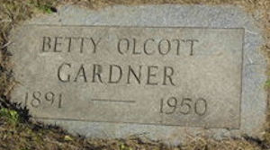Birth Born on January 30, 1891 in Bridgeport, Madison Co., NY Death Died on April 26, 1950 in Syracuse, Onondaga Co., NY Buried in Oakwood Cemetery in Syracuse, Onondaga Co., NY Marriages GARDNER, Harold Devere Children GARDNER, Olcott: September 22, 1923 - October 28, 1981 Sources New York Deaths: Pg. 1729 #24202 Images Betty (Olcott) Gardner Betty (Olcott) Gardner Death
