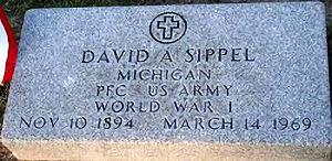 Parents Father: SIPPEL, Richard Maurice Mother: SHAW, Lillian Birth Born on November 10, 1894 in Azusa, Los Angeles Co., CA Death Died on March 14, 1969 in Manatee Co., FL Buried in Delta Center Cemetery in Grand Ledge, Eaton Co., MI Marriages MURPHY, May Agnes Married on June 30, 1927 in San Gabriel, Los Angeles Co., CA Notes Occupation: Bookkeeper/ General Manager of Automobile Co./ Office Manager of Retail Automobile Dealer Military Service: WW1 US Army Sources US Veterans Admin Index: #1951974 Images David Sippel David Sippel WW1 Draft David Sippel Marriage David Sippel Military Service