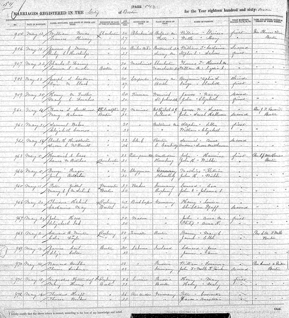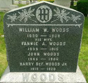 Parents Father: PHINNEY, Wells Mother: BURNS, Lydia Jane Birth Born on August 12, 1840 in Wilmot, Annapolis Co., NS Death Died on May 15, 1915 in Boston, Suffolk Co., MA Buried in Woodlawn Cemetery in Everett, Middlesex Co., MA Marriages WOODS, William W. Married on May 13, 1867 in Boston, Suffolk Co., MA Children WOODS, John: March 20, 1868 - November 09, 1906 WOODS, Harriet M.: September 12, 1870 WOODS, Frederick Ingraham: August 11, 1872 - November 02, 1920 WOODS, Harry DeForest: July 04, 1878 - 1955 Notes Death: Rhumatoid Arthritis/yocarditis Sources Massachusetts Deaths: Boston,MA #5191 Images William & Frances A. (Phinney) & John & Harry Woods Jr William & Frances A. (Phinney) Woods Frances A. (Phinney) Woods Death Frances A. Phinney Marriage