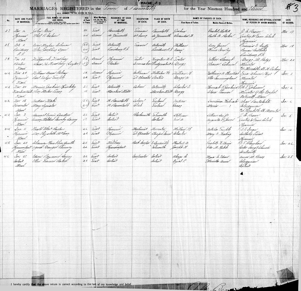 Birth Born on 1886 in Massachusetts, USA Death Died on March 18, 1972 in Pittsfield, Berkshire Co., MA Marriages PHINNEY, Agnes Granger Married on December 25, 1911 in Hyannis Port, Barnstable Co., MA Children SMITH, Lester Mayhew: September 19, 1912 - August 22, 1997 SMITH, Donald Francis: September 01, 1915 - September 10, 1915 SMITH, Allen W.: 1925 Notes Occupation: Bookkeeper/ Paymaster Sources Massachusetts Deaths: #011600 Images Agnes G. Phinney Marriage