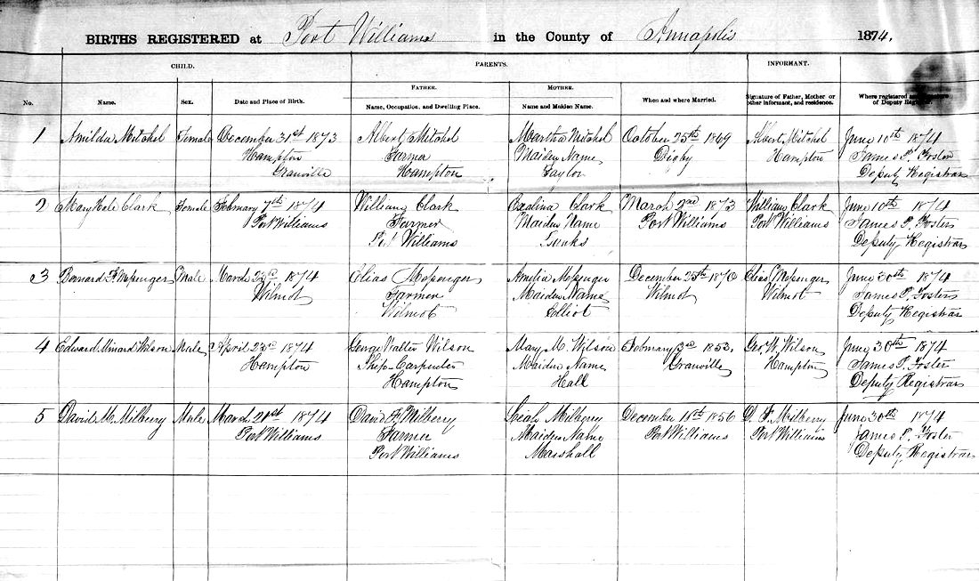 Parents Father: CLARK, William Mother: BANKS, Exaline R. Birth Born on February 07, 1874 in Port Williams, Annapolis Co., NS Death Died on December 31, 1947 in Brockton, Plymouth Co., MA Buried in Melrose Cemetery in Brockton, Plymouth Co., MA Marriages HALL, Edwin Everett Married on September 25, 1916 in Brockton, Plymouth Co., MA Notes Occupation: Shoe Equipment Operator Sources Mormons: https://www.familysearch.org/tree/person/details/LHT6-TTH Images Mary H. Clark Birth Mary H. (Clark) Hall Mary H. Clark Marriage