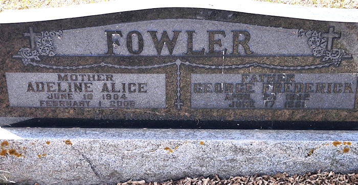 Parents Father: FOWLER, George Frederick Mother: PRICE, Annie Laurie Birth Born on April 25, 1882 in Petitcodiac, Westmorland Co., NB Death Died on June 17, 1951 in Stettler, Stettler Co., AB Buried in Rumsey Cemetery in Rumsey, Starland Co., AB Marriages GRAY, Adeline Alice (Kahandawes) Married on 1924 in Alberta, Canada Children FOWLER, Mary Anne FOWLER, Rose Marie FOWLER, William Frederick: February 24, 1925 - February 27, 2019 FOWLER, George Frederick: March 24, 1926 - November 02, 2017 FOWLER, Audrey Adeline: November 13, 1928 - January 14, 2014 FOWLER, Richard Sherwood: April 12, 1932 - July 08, 2012 FOWLER, Dorothy Mae: May 18, 1935 - March 29, 1936 FOWLER, James Edward: November 16, 1941 - August 19, 1947 FOWLER, Stanley Gilbert: November 12, 1943 - January 06, 2012 Notes Occupation: Telegrapher/ Employee at CN Rail/ Sercretary-Treasurer Village of Big Valley Death: Stroke Sources Cemetery: Rumsey Cemetery Rumsey,AB Images George F. Fowler Jr Birth George Jr & Adeline (Gray) Fowler George Fowler Jr Obit The Calgary Albertan Calgary, AB June 27,1951